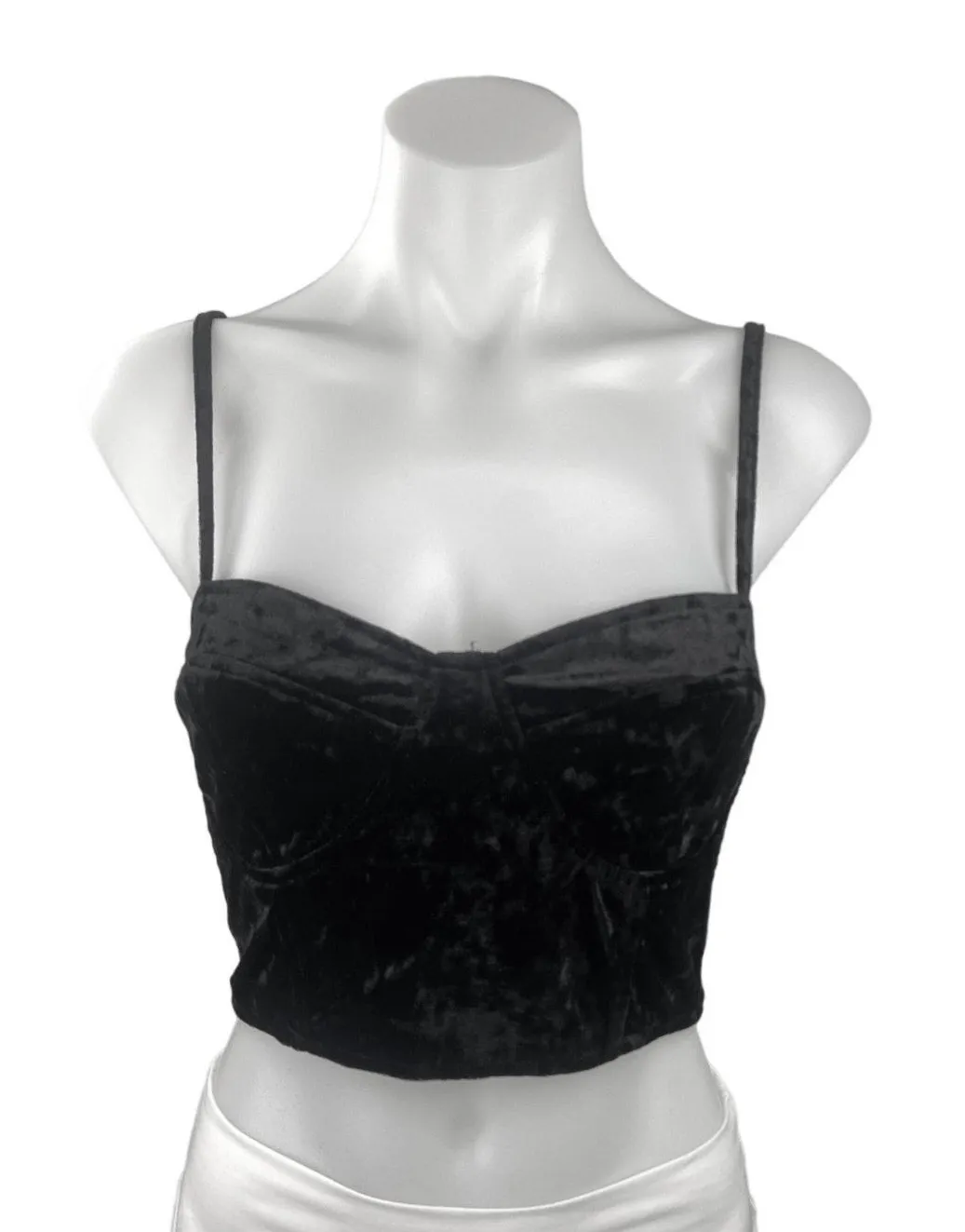 Mink Pink Black Velvet Sweetheart Neck Spaghetti Strap Smocked Back Stretch Bustier Crop Top Size S... Show more