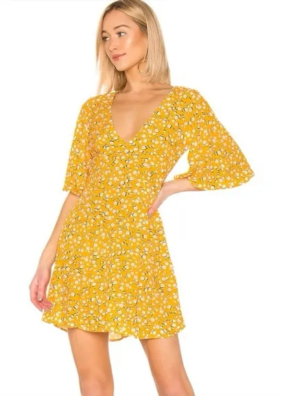 MINKPINK Summer Daisy Tea Dress in Golden Yellow in good preowned condition. Has a small fabric snag... Show more