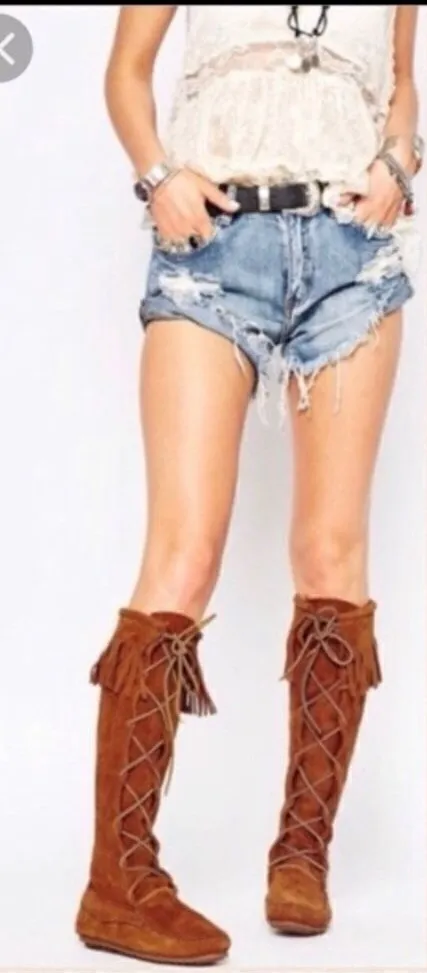 Minnetonka Vintage Fringe Tall Lace Boots Suede 10 Size 10 True vintage Wear on drivers and toes- se... Show more