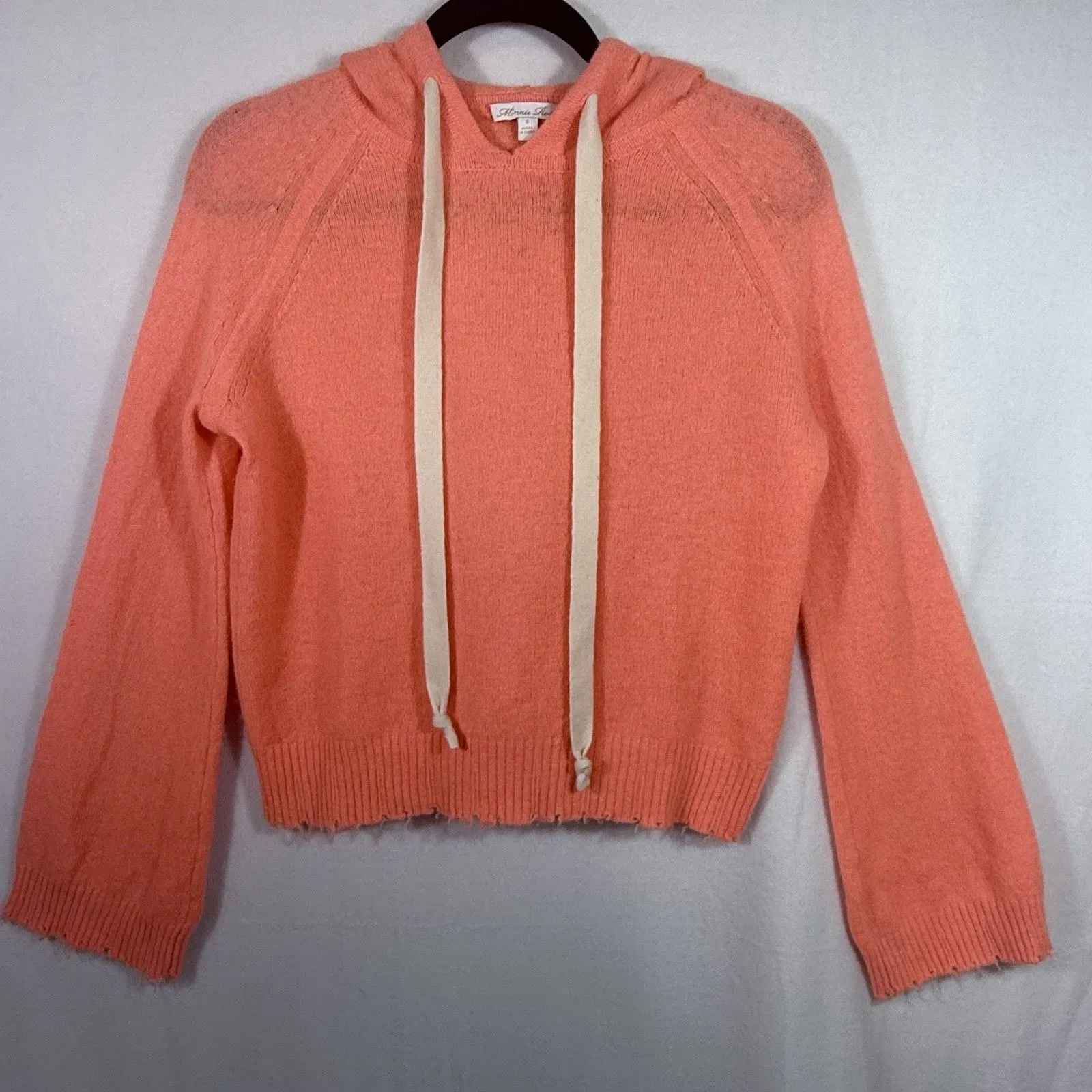 Minnie Rose Coral Orange Hooded Cropped Chewed Hem Cashmere Sweater Hoodie Size S Boxy Oversized Coz... Show more