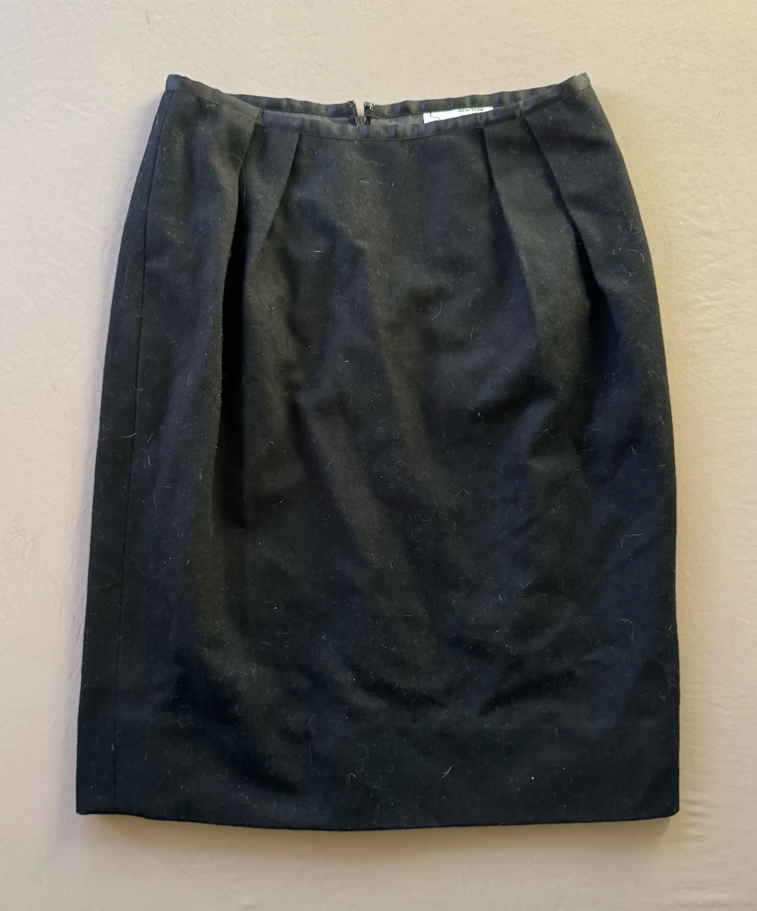 - Strait Skirt in black with a back zip closure, pleated waist, back vent slip & interior lining - size 6 (28” waist, 39.5” hem, 23” length, 40” hip) - a classic vintage essential can easily be elevated for every occasion - classy, elegant, city look, going out, romantic, preppy girl, academia, boss babe, twee, black tie, corporate, coquette, sleek, formal, tradwife, demure, it girl, girlhood, regency, office siren, corp core, cool girl, city girl, european, Parisian, uniform, professional, sophisticated, mob wife, effortlessly chic, fashionista, city chic, modernist, minimal, 90s minimalism, contemporary, hyperfeminine, modest, chic style, chic fashion, corp core, business casual, office core, internship, career, 2010s, gossip girls, old money, old school, boho, workwear, fall fashion, fall style, autumnal, winter fashion, winter style, winter basics - condition 8/10, some wear in great condition