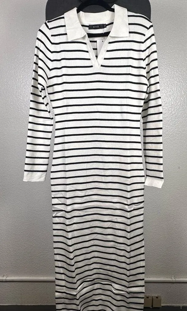 Elevate your wardrobe with this chic long sleeve dress featuring classic black and white stripes. Perfect for any occasion, this dress offers a timeless style with a comfortable fit.