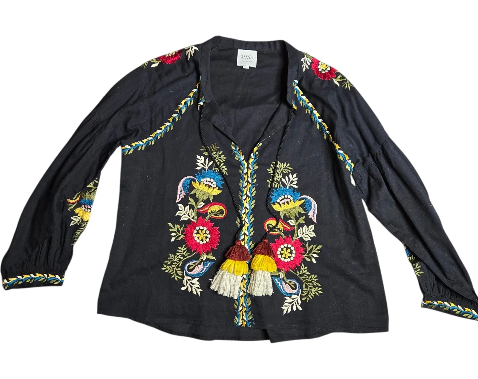 MISA Los Angeles Black Floral Embroidered Tassle Blouse Size: S - $65 - From Denise