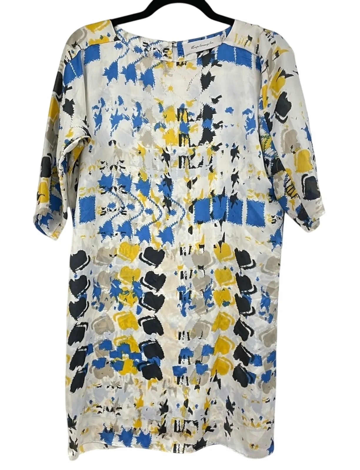 Misa T Bags Los Angeles Blue & Yellow Silk Mini Shift Dress XS Short Sleeve - $55 - From Lisa