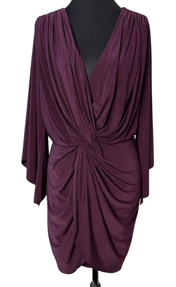 Misa Los Angeles Teget Twist Front Draped Mini Dress Bell Sleeves Plum Purple Size Med Size: Women... Show more