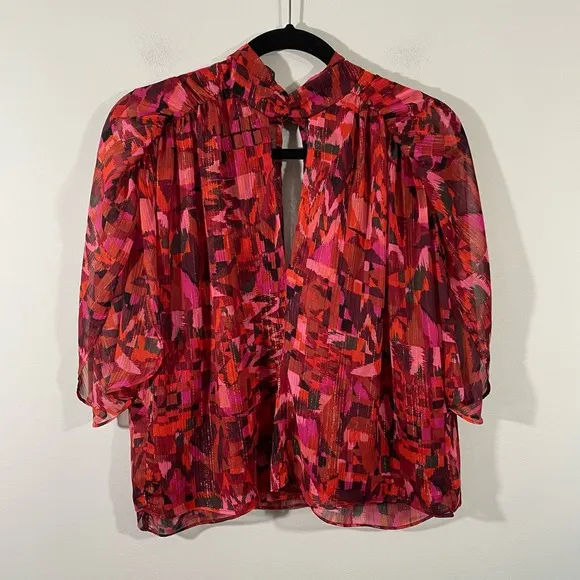 MISA Los Angeles Women's Red Floral Crimson Geo Greta Blouse - Size S - Excellent pre-owned conditi... Show more
