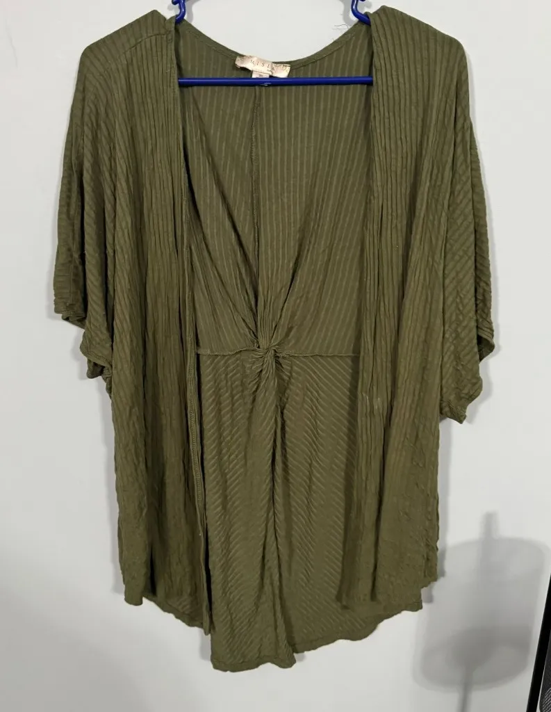 Misia Curvy Military Green Short Sleeve Cardigan Top in Women's Plus Size 3X. Ribbed, gathered at th... Show more