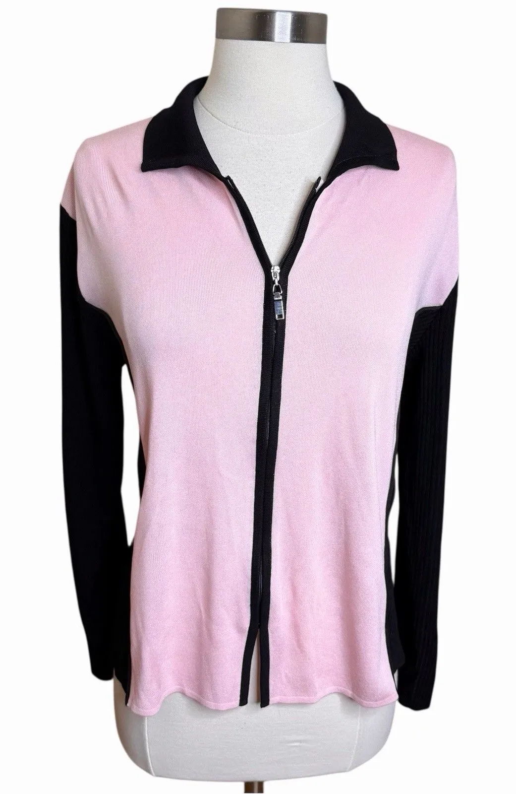 Misook Zip Front Knit Cardigan Womens M Pink Black Colorblock Long Sleeve Preppy Size M - $40 - From Laura