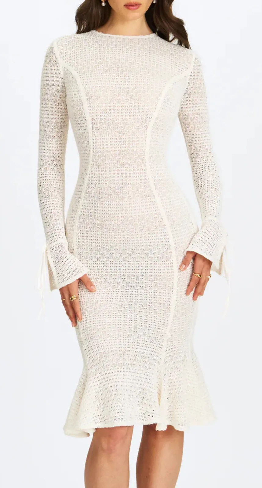 Miss Circle Midi Flare Mermaid Dress Pamina Crochet Long Sleeve Size XS in Cream - $113 New With Tags - From Dressed in