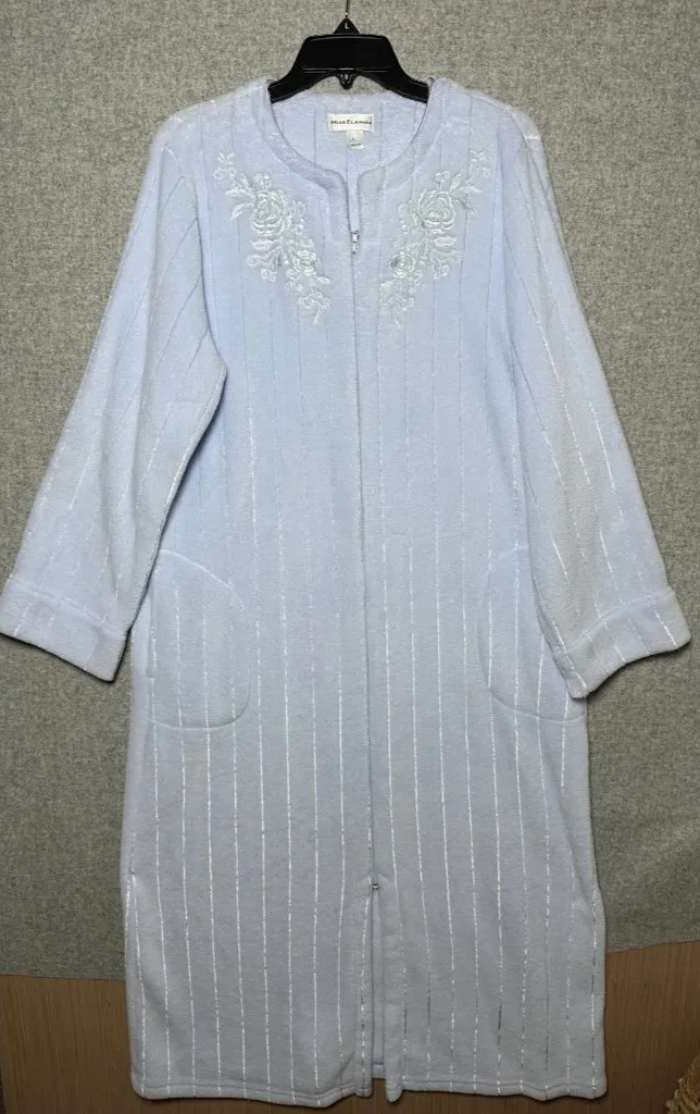 Miss Elaine Large Fleece Nightgown Robe Full Zip Light Blue Embroidered Midi - $25 - From Anne