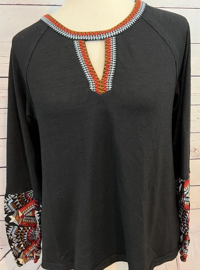 Miss Me Blouse Small Aztec Western Boho Hippie Shirt Peasant 60% Polyester 35% Viscose 5% Spandex. B... Show more