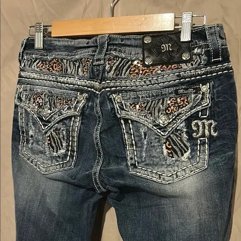 These Miss Me jeans feature a classic boot cut design in a rich blue hue, enhanced by a stylish fade... Show more