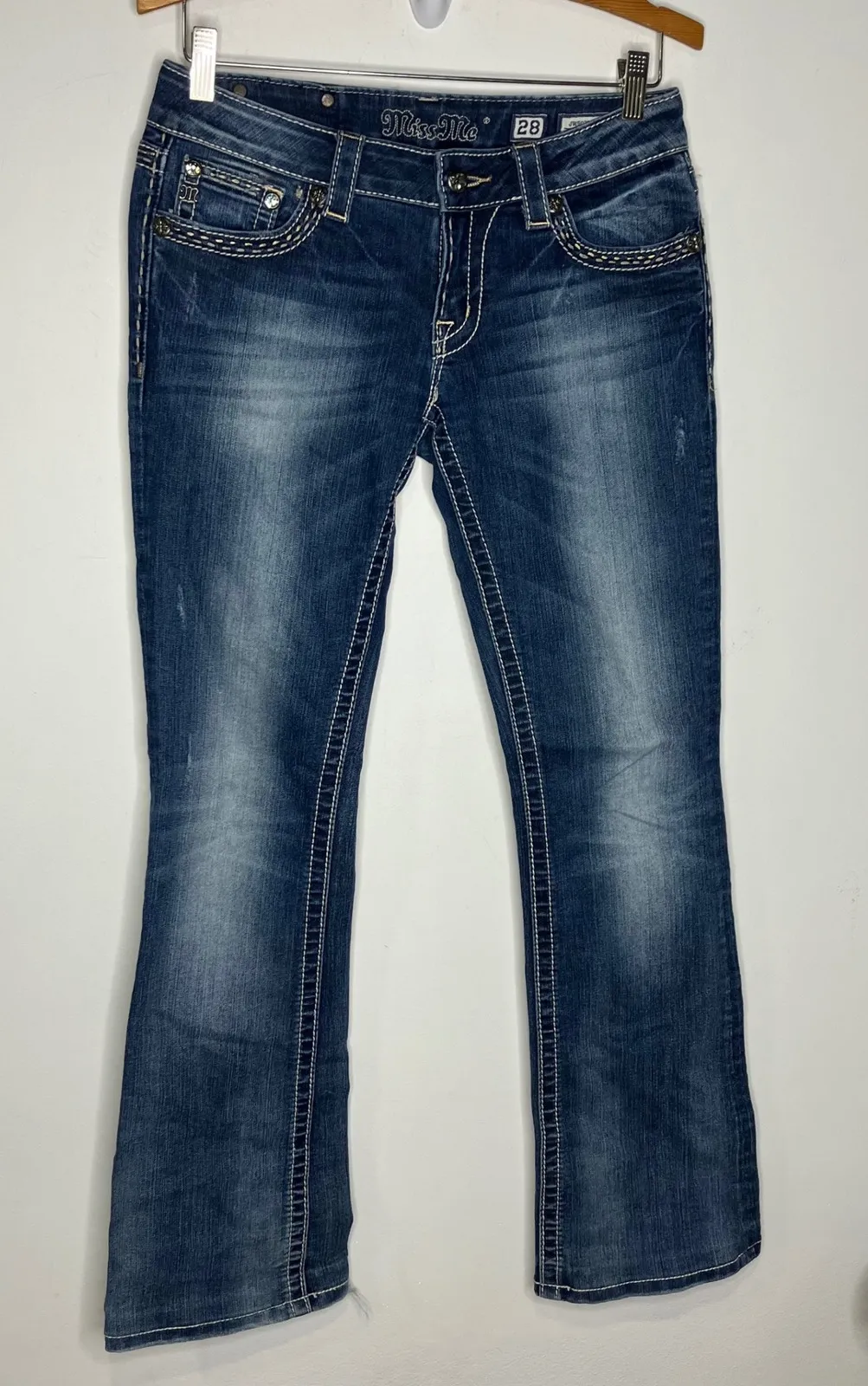 Miss Me boot cut jeans women's size 28 distressed western cowgirl bling Has some wear on the back... Show more