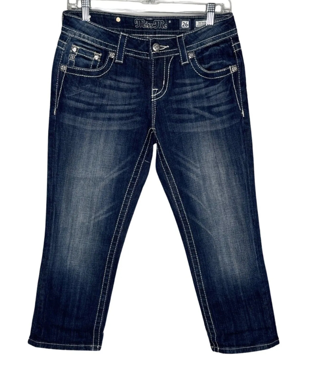 Miss Me Jeans Womens 2 26" Blue Easy Cropped JE5769EC2 Dark Wash Fading Casual Women's Size 2 (26”)... Show more