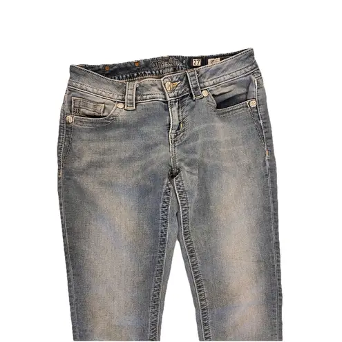 Elevate your wardrobe with these stylish Miss Me Signature Skinny Fit Jeans in a light blue wash. Th... Show more