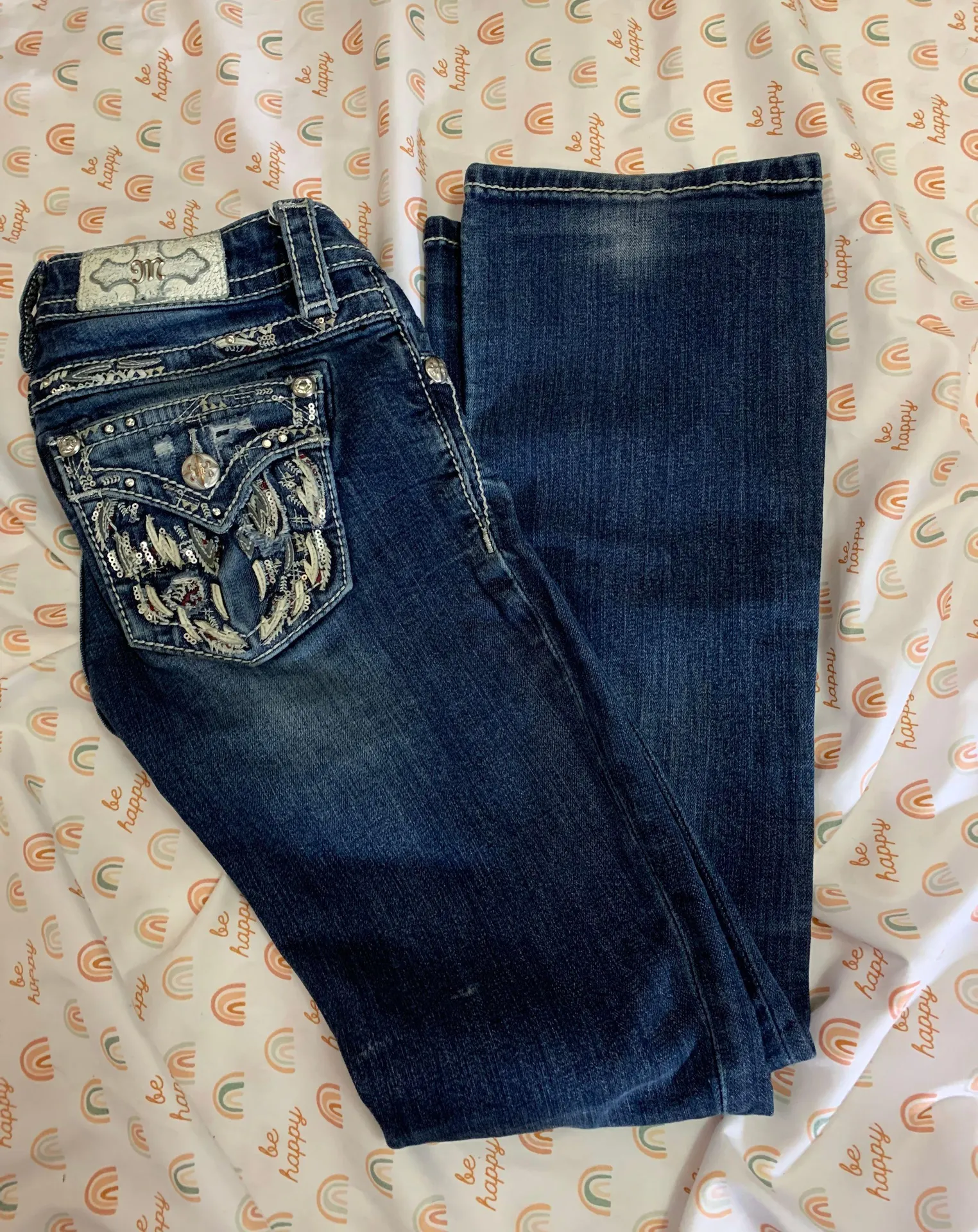 Miss Me Jeans’ famous denim shorts and skinny, bootcut, and straight-leg jeans are instantly recognizable thanks to their iconic white stitching, decorative pockets, rhinestone embellishments, and crystal buttons.