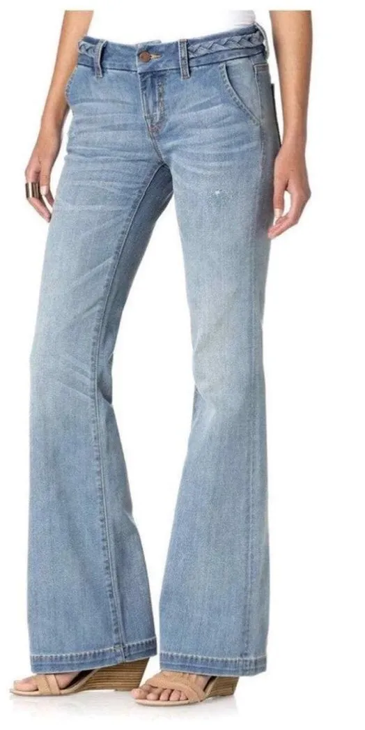 EUC. Miss Me Mid-Rise Wide Leg Jeans Light Wash Women's Size 30. Jeans are missing the braided belt.... Show more