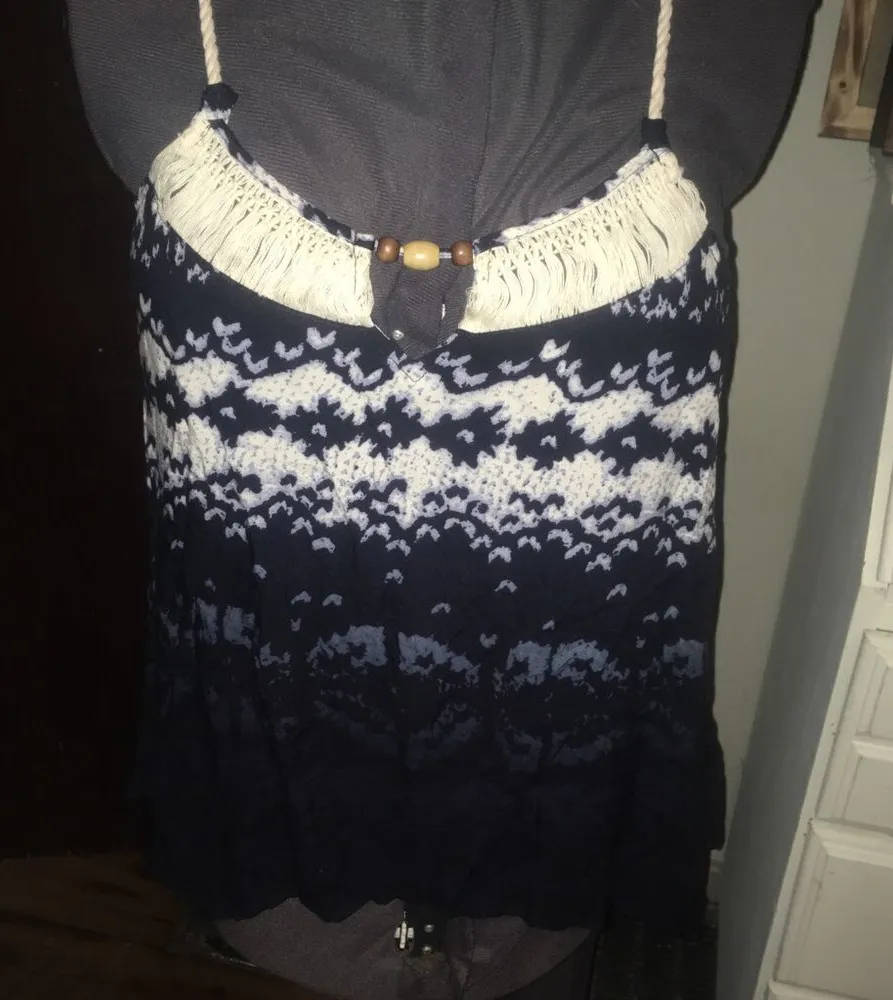 Beautiful, vibrant blue tank top. Ombré. Some minor wear. Approximately 19 inches from armpit to arm... Show more
