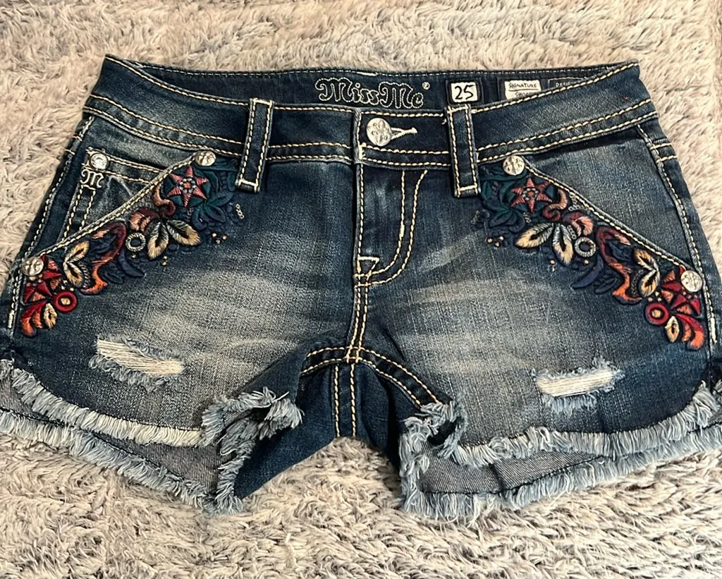 New never worn without tags vintage denim distressed MissMe short shorts with beautiful embroidered... Show more
