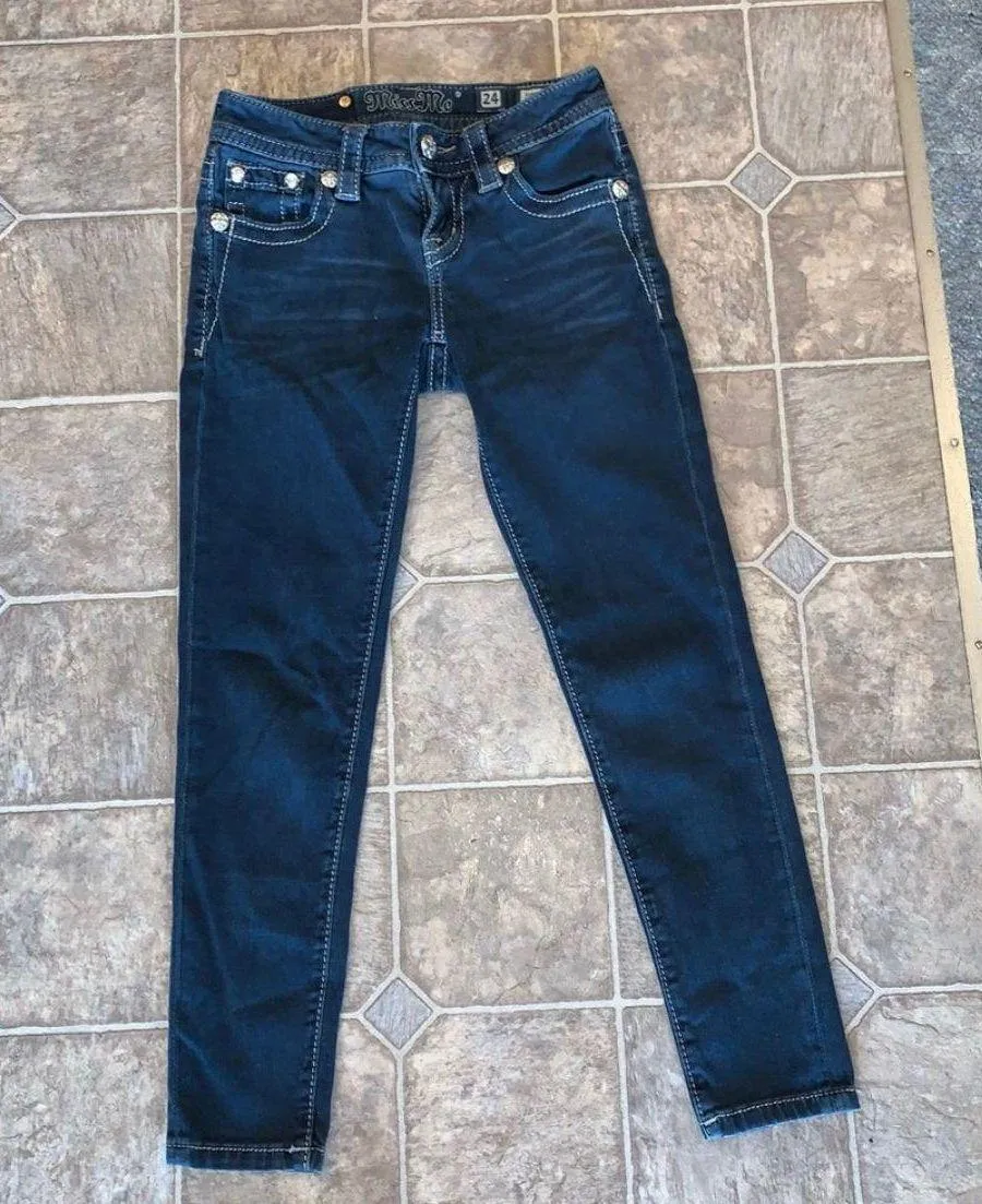 Miss Me Jeans’ famous denim shorts and skinny, bootcut, and straight-leg jeans are instantly recognizable thanks to their iconic white stitching, decorative pockets, rhinestone embellishments, and crystal buttons.
