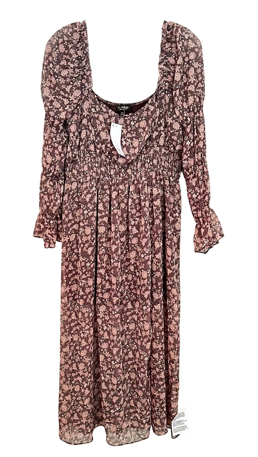 Miss Selfridge Prairie Boho Smocked Dress Women's 10 Purple Floral Dainty Hippie. NEW WITH TAGS! Stunning, pullover floral dress. Muted dark purple with pale pink and tan floral print. Sheer sleeves with elastic cuff and ruffle. Lined. (Lining comes down the skirt midway and the rest of the skirt is sheer.) Smocked empire waist. Elastic around the shoulders for comfort and fit. 100% polyester. Machine wash. Ships from a non-smoking home. Measurements: PTP: 19" ength: 49" Sleeves: 24"