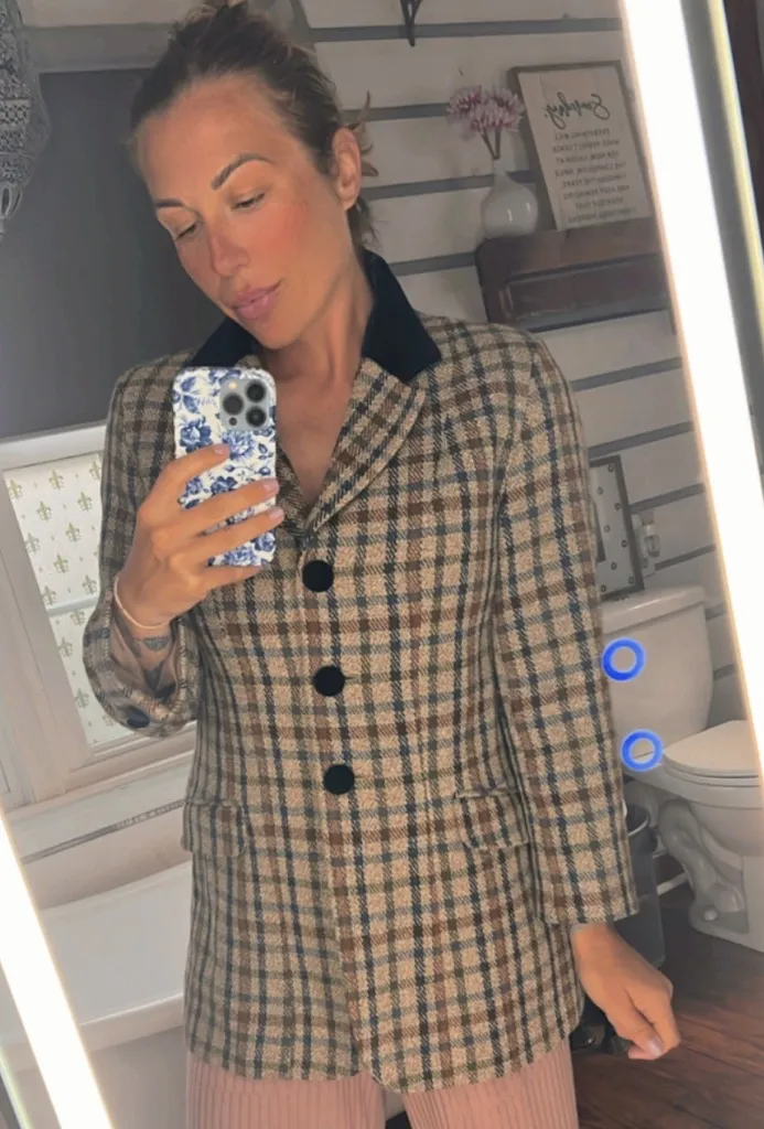 FLAWLESS VINTAGE PLAID GERMAN WOOL and VELVET BLAZER JACKET Measures: taken flat Tag 36 P2P 18”... Show more