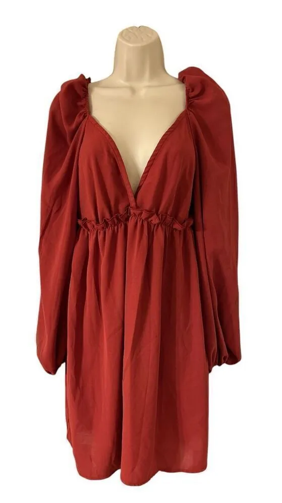 Missguided Women's Puff Sleeve Wrap Over Skater Dress Burgundy Size US:4 NWT - $30 New With Tags - From T