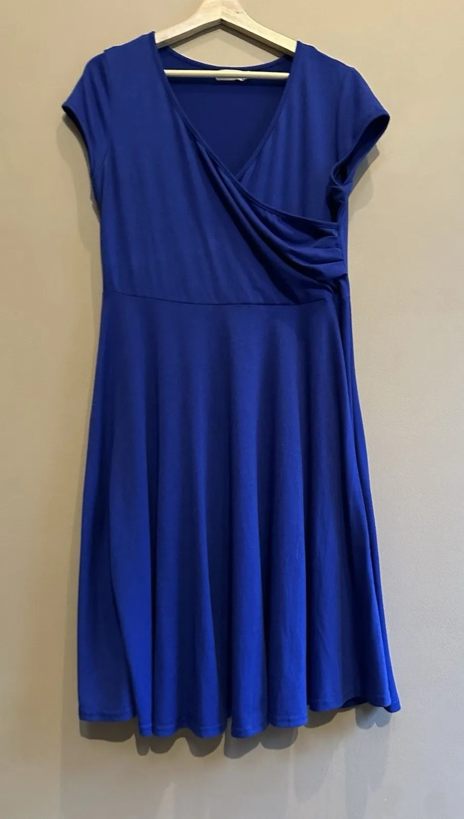 Missky Womens Short Sleeve Wrap Cotton Royal Blue Midi Dress Size Large Comfy Some overall wash wea... Show more
