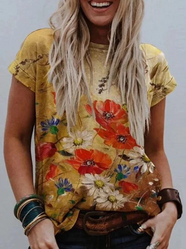 ✨Misslook Summer Floral Short Sleeve Casual Cotten Blend Sz Large Tee✨ Orange - $35 - From Yekaterina