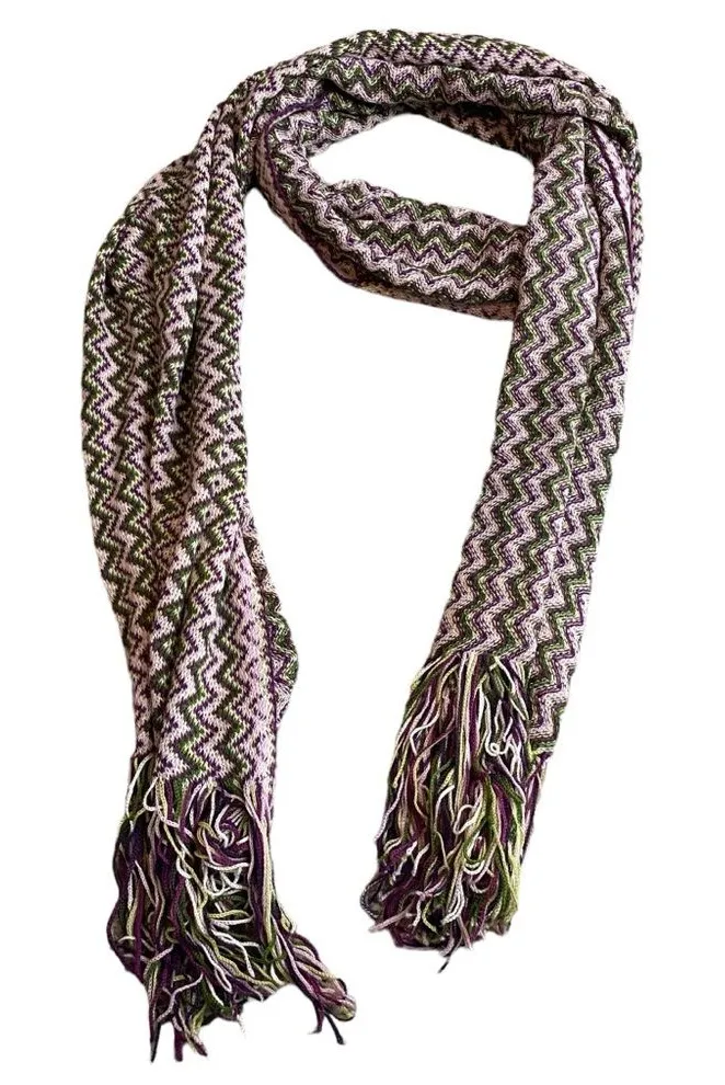 Missoni Women’s Chevron Knit Fringe Scarf Green Purple Zig Zags Brand: Missoni Condition: Gently u... Show more
