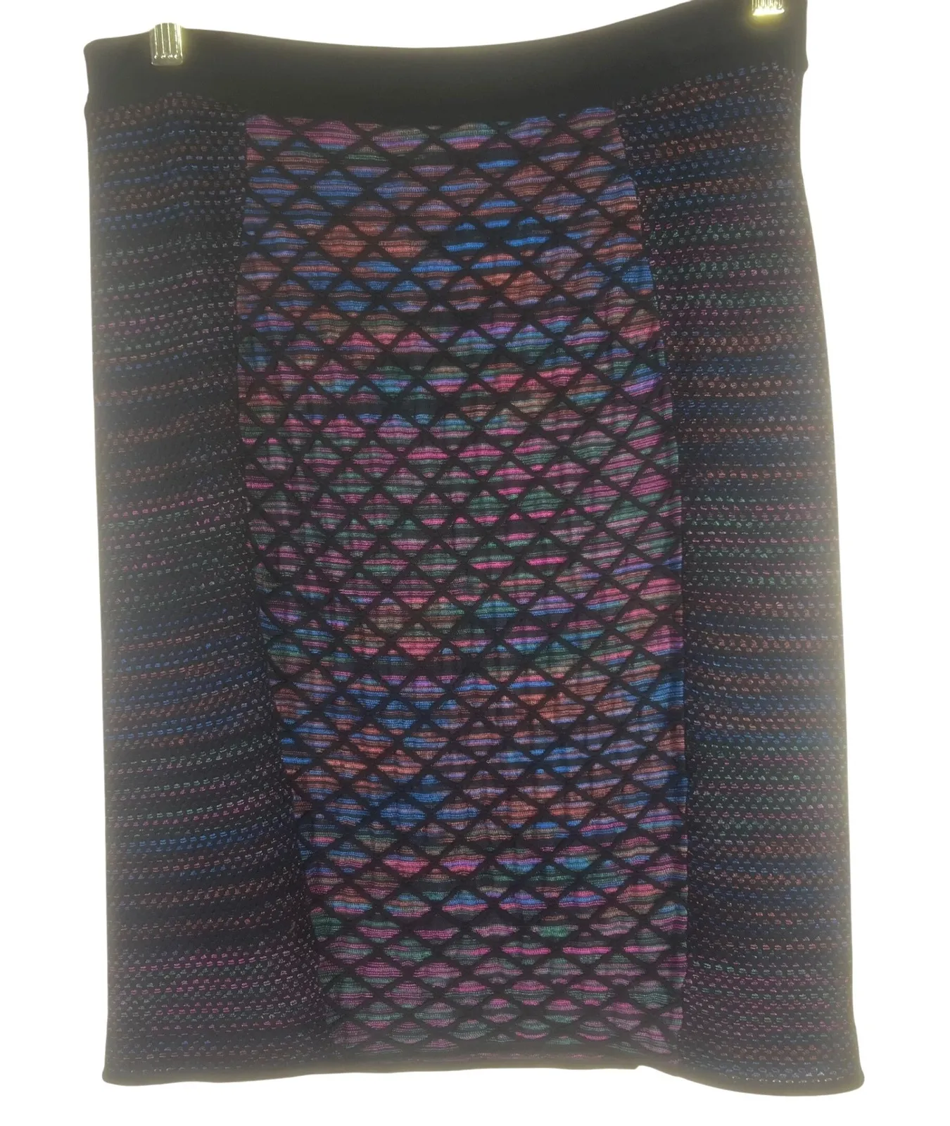 Missoni is known for its bold patterns and luxurious Italian craftsmanship, Missoni delivers timeless statement pieces, and this skirt is no exception. Featuring a multicolor geometric design with contrasting textured side panels, it's a versatile piece that transitions seamlessly from day to night. Pair with a blouse and heels for an elegant look, or dress it down with a fitted tee and boots. Measurements (approx., laying flat): Waist: 15", Length: 21" • Size: 46 (Italian) – approx. US 10/12 • Style: Knit Skirt / Pencil Skirt • Material: 74% Viscose, 14% Polyester, 11% Cotton, 1% Polyamide (fabric tag is missing) • Length: Knee to mini (depending on height) • Iconic Missoni multicolor knit design • Textured geometric pattern with contrasting side panels • Pull-on elastic waistband • Made in Italy • Condition: Pre-owned, excellent condition – no visible flaws Italian designer skirt, multicolor knit, luxury fashion, geometric skirt, boho chic, runway style