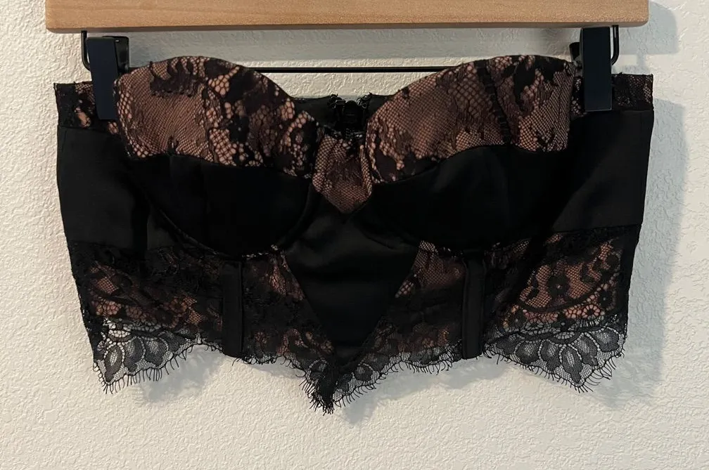 Mistress Rocks LA Black Tan Lace Satin Sleeveless Cropped Bustier Top Size M This chic and sexy b... Show more