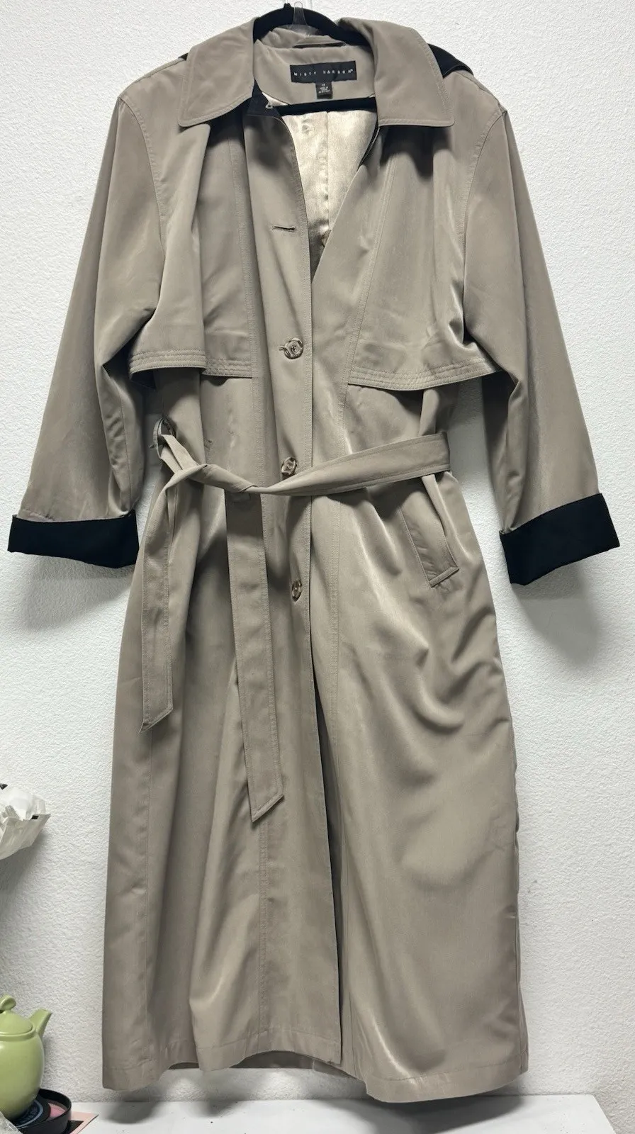 Misty Harbor Beige Khaki Trench Coat Women's 14 XL Removable Hooded Belt Vintage Tan Size 14P - $35 - From Tracy