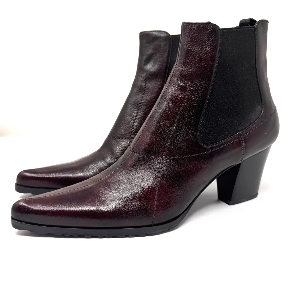 Authentic MIU MIU Prada brown leather western style booties, made in Italy, size 39.5, NWOT Brand new. Leather and fabric upper. Reinforced rubber and leather soles. Measurements are approx and not exact. Please review all images and ask questions prior to purchase.