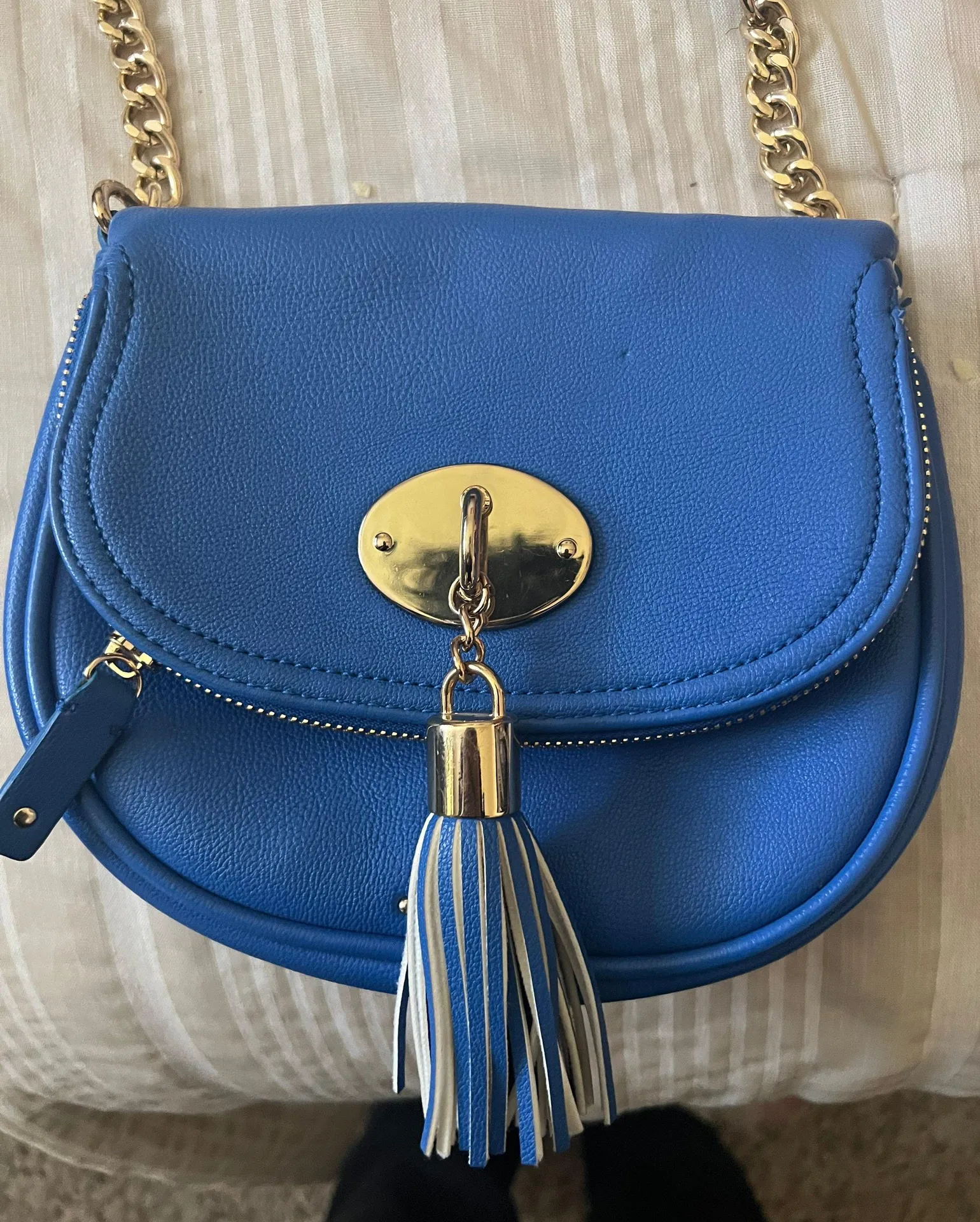 Has small tears on the size of purse. Long strap still in pretty good condition