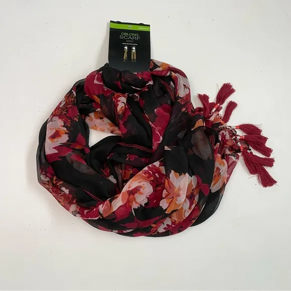 Scarf Oblong Large Floral Fringe Embroidery Wine Red Black Orange White - $19 New With Tags - From Nicole