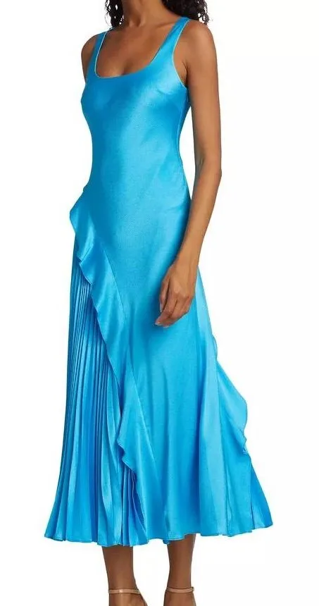 ML Monique Lhuillier Liv Satin Midi pleated Dress cyan blue size 6 - $150 - From Sassia