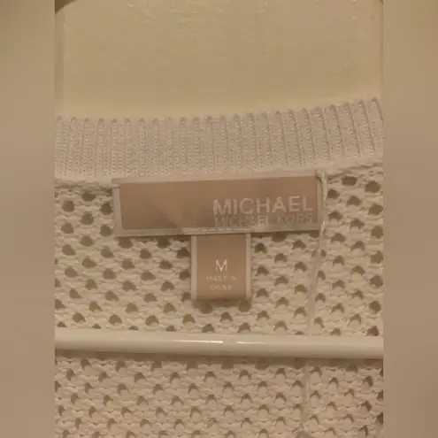 Preowned and in good condition! Elegant white knit sweater with textured floral netted design and lo... Show more