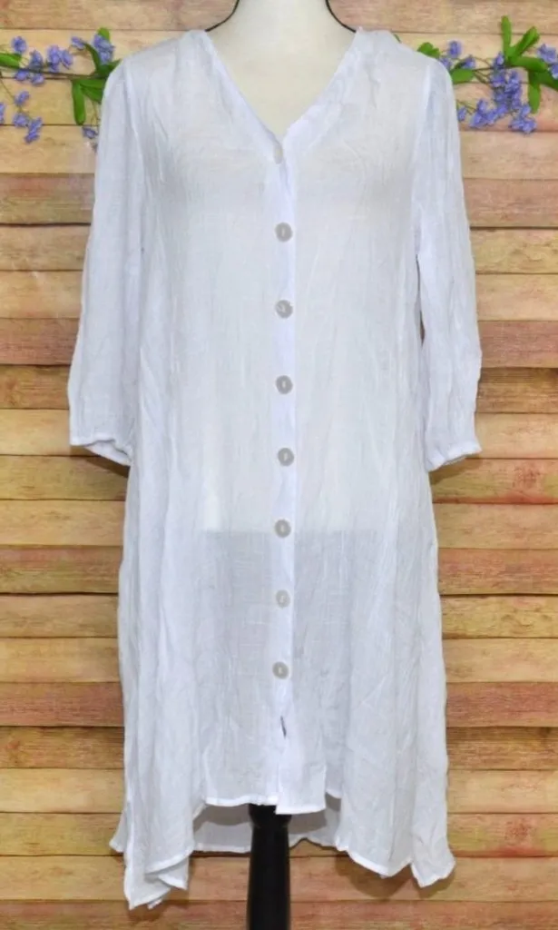 This Mlle Gabrielle shirt dress is a perfect blend of style and comfort. Its lightweight, sheer fabric makes it ideal for layering, while the 3/4 sleeves and v-neck design add a touch of elegance. Perfect for casual outings or a relaxed day at home. • Lightweight and sheer • Button-up front • 3/4 sleeve design • V-neck style • Ideal for layering • Casual, comfortable fit Location: Section 24 Please SEE measurements of the clothing items to insure fit! Measurements are in the last photo. To check measurements, measures a well fitting garment laying flat unstretched. We double the measurement for bust/chest/waist/hip/thigh and leg opening. Length is measured from shoulder to hem. Inseams are measured along the inseam. When you see TWO measurement for one area it is because the item has stretch and one is laying flat and the other is stretched. 🙂 Size: Womens XL Condition: Pre-Owned Like New Excellent Condition Thanks for looking at my listing. I have been selling online for several years and take pride in the items that I am listing and feel they will make a great addition to someone's wardrobe or home. All the items I am listing have been checked by several people and do not have any flaws such as holes, rips, or stains. Any issues a piece may have will be disclosed and will be included in the photos. Check out my other items to save on shipping! Please feel free to ask any questions you might have we are happy to answer 🙂 Happy Shopping!