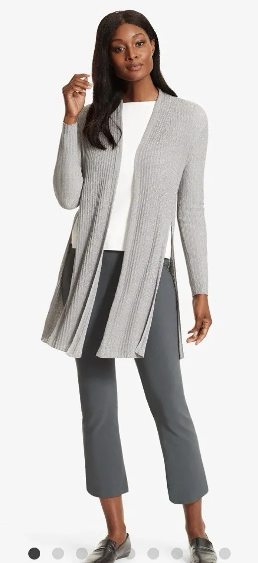 Great pre owned condition. Still has hang tags string on the tag, but does not have the hang tag. Size +1 which is the brands xl sizing. Open front. Slit sides. All measurements are approximate: 21 inches pit to pit. 18 inch sleeve from cuff to pit. 39 inch length from shoulder to bottom hem. W2