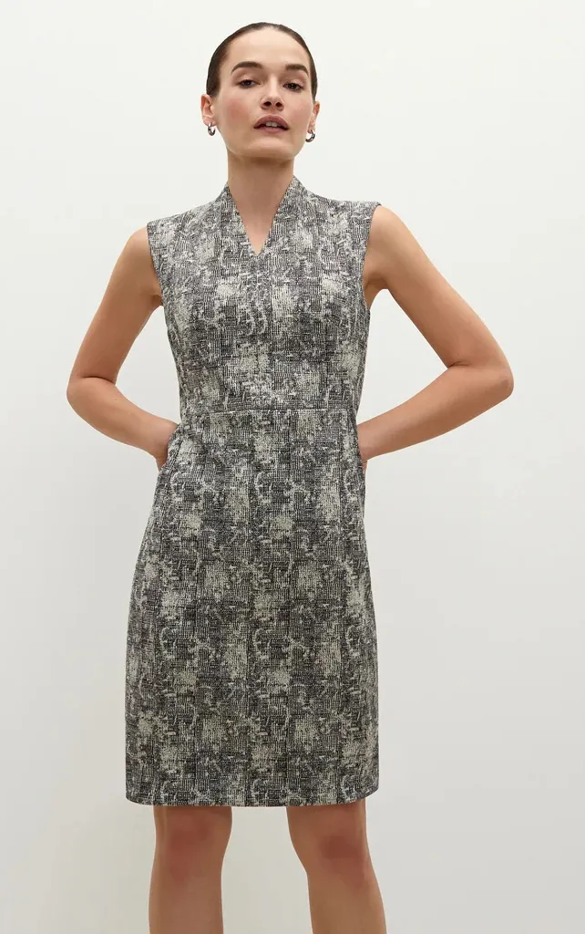 MM LaFleur The Aditi dress in crackle, a textured black and white fabric. Excellent condition! Has stretch Measures approx 15.5” from pit to pit laying flat and 35” from shoulder to bottom hem