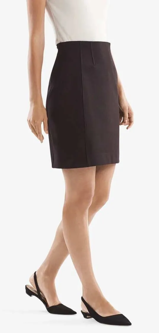 MM La Fleur The Crosby Skirt in a Textured Ponte knit fabric in the color Lava black. This knee-length skirt features a flattering silhouette perfect for both professional and casual settings. Ideal for office wear, date nights, or elegant evenings out. Keywords: MM La Fleur, Crosby Skirt, Textured Ponte, Lava Black, Knee Length, Pencil Skirt, Workwear, Office Attire, Sophisticated, Classic, Minimalist, Business Casual, Professional