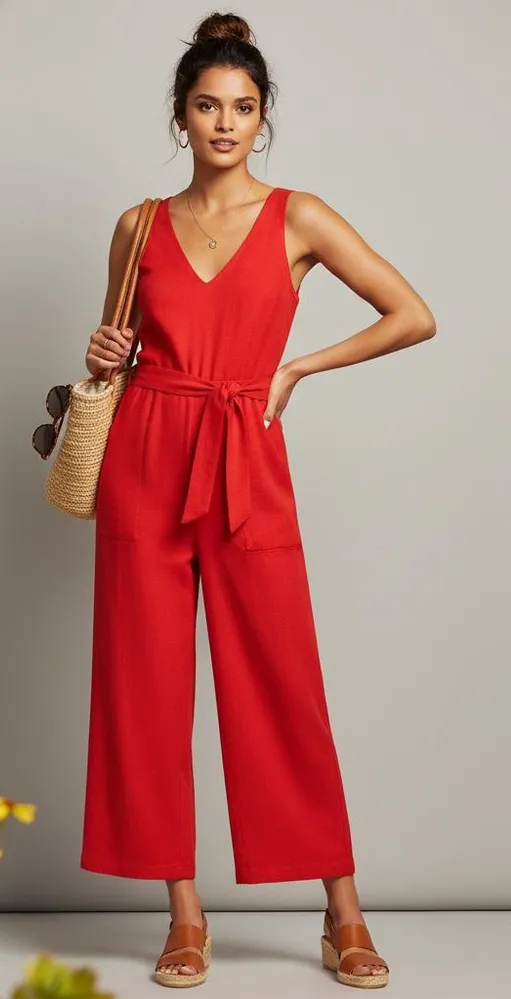 Brand news with all tags attached. Linen blend. Red color. Sleeveless, wrap top design. Back zipper.... Show more
