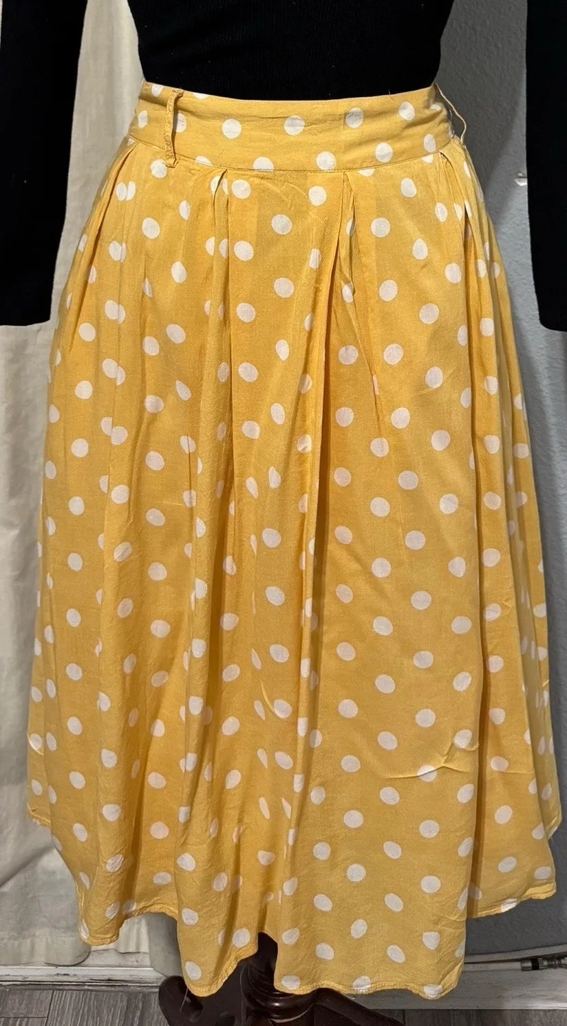 MOD BE Women A-Line Pleated Vintage Yellow Polka-Dot Lined Zippered Skirt Size L Size L - $25 - From Iris