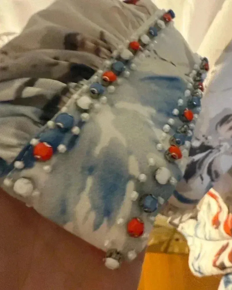 Moda Luxe Blue and White Floral V-Neck Bishop Sleeve Blouse Size L - $16 - From Ashley