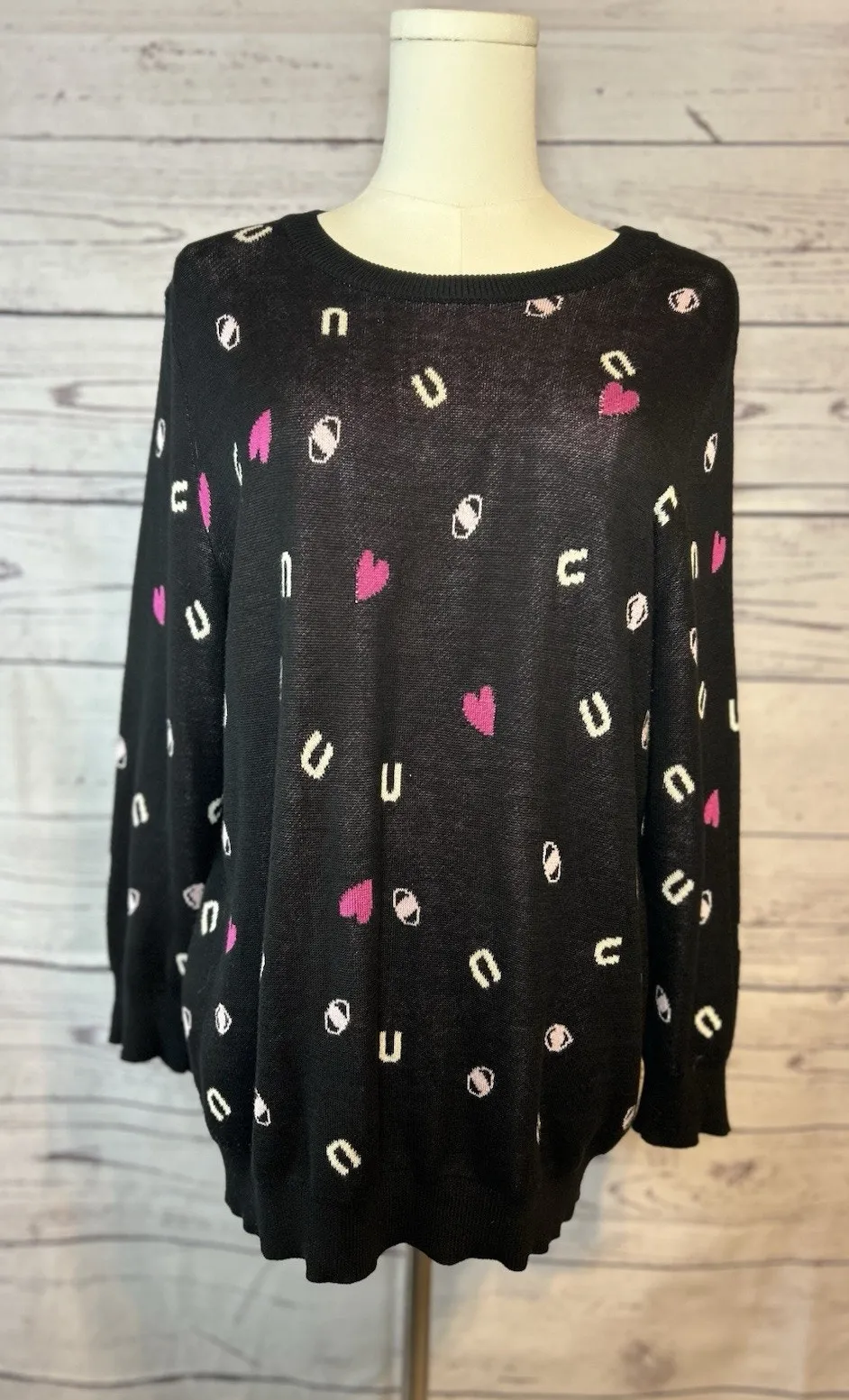 Adorable and cozy ModCloth modal-cotton blend sweater featuring an all-over “I Love You” pattern wit... Show more