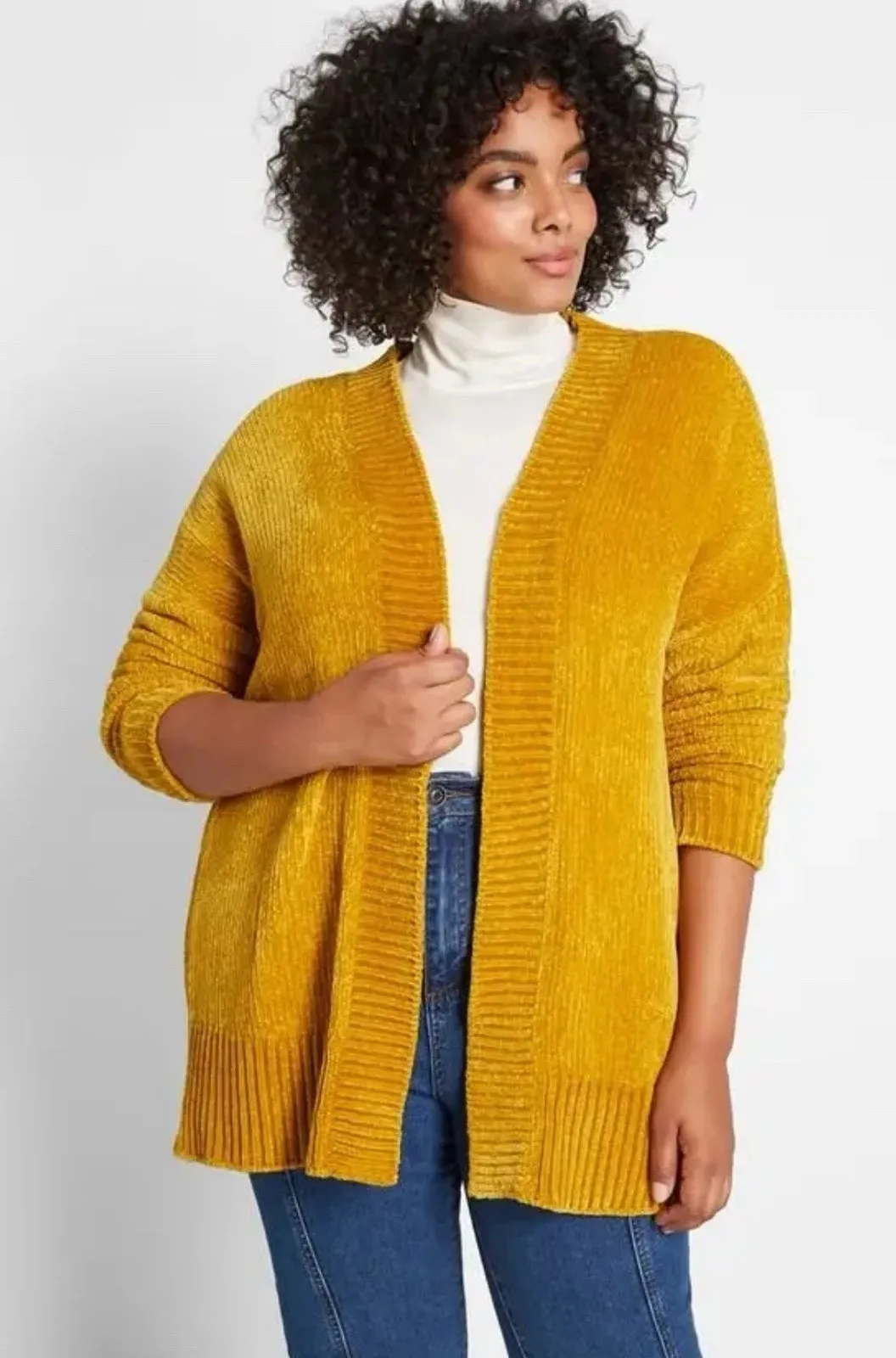 ModCloth Chenille the Deal Cardigan Open Front Golden Yellow Women’s L Gold Size L - $23 - From Sonya