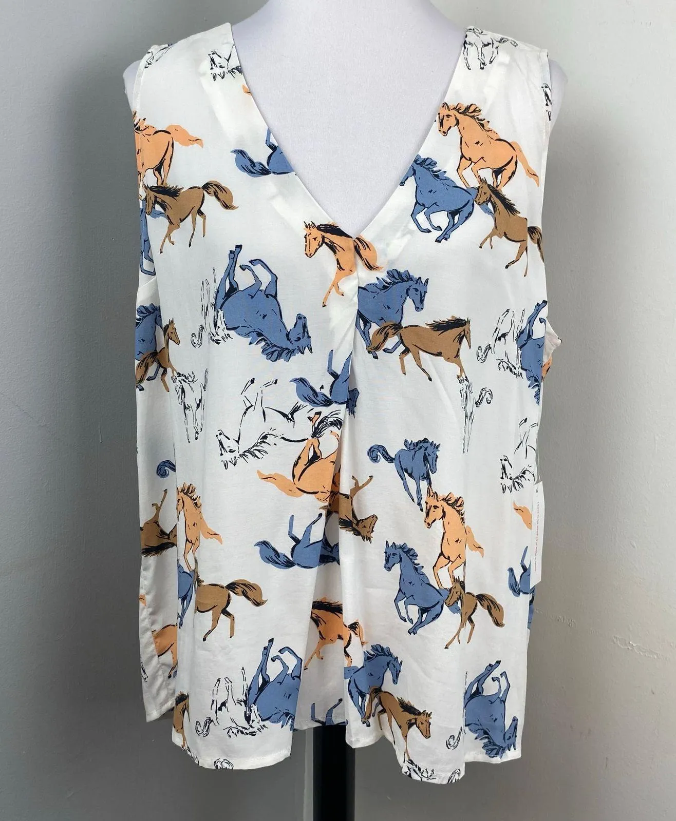NEW WITH TAGS ModCloth Blouse Like the Wind Equestrian Horse Print V Neck Sleeveless XL Chest 23... Show more