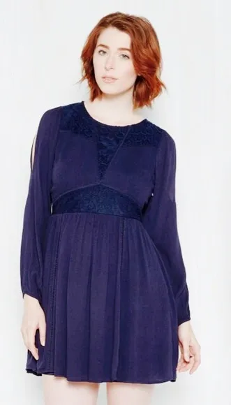 This bohemian style dress has a flowy pleated skirt with a fitted waist. It features a lace paneled... Show more