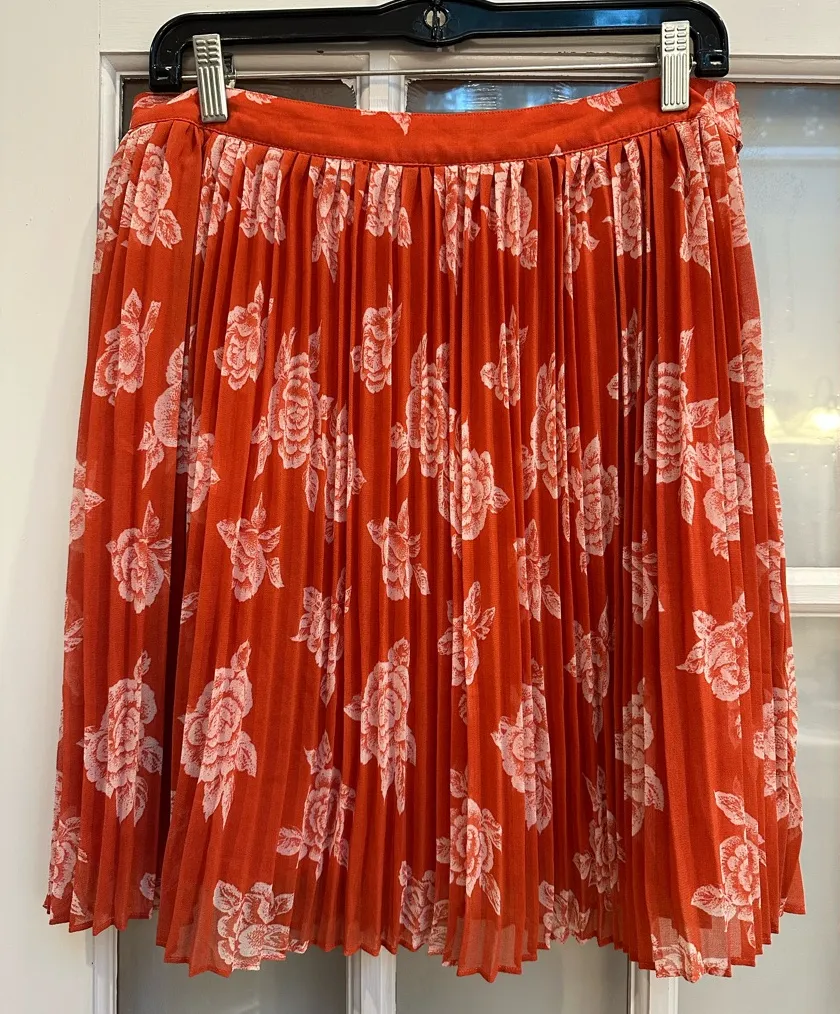 ModCloth Perfectly Posh Pleated Floral Skirt Orange Red Size 10 NWOT Elegant floral pleated skirt i... Show more